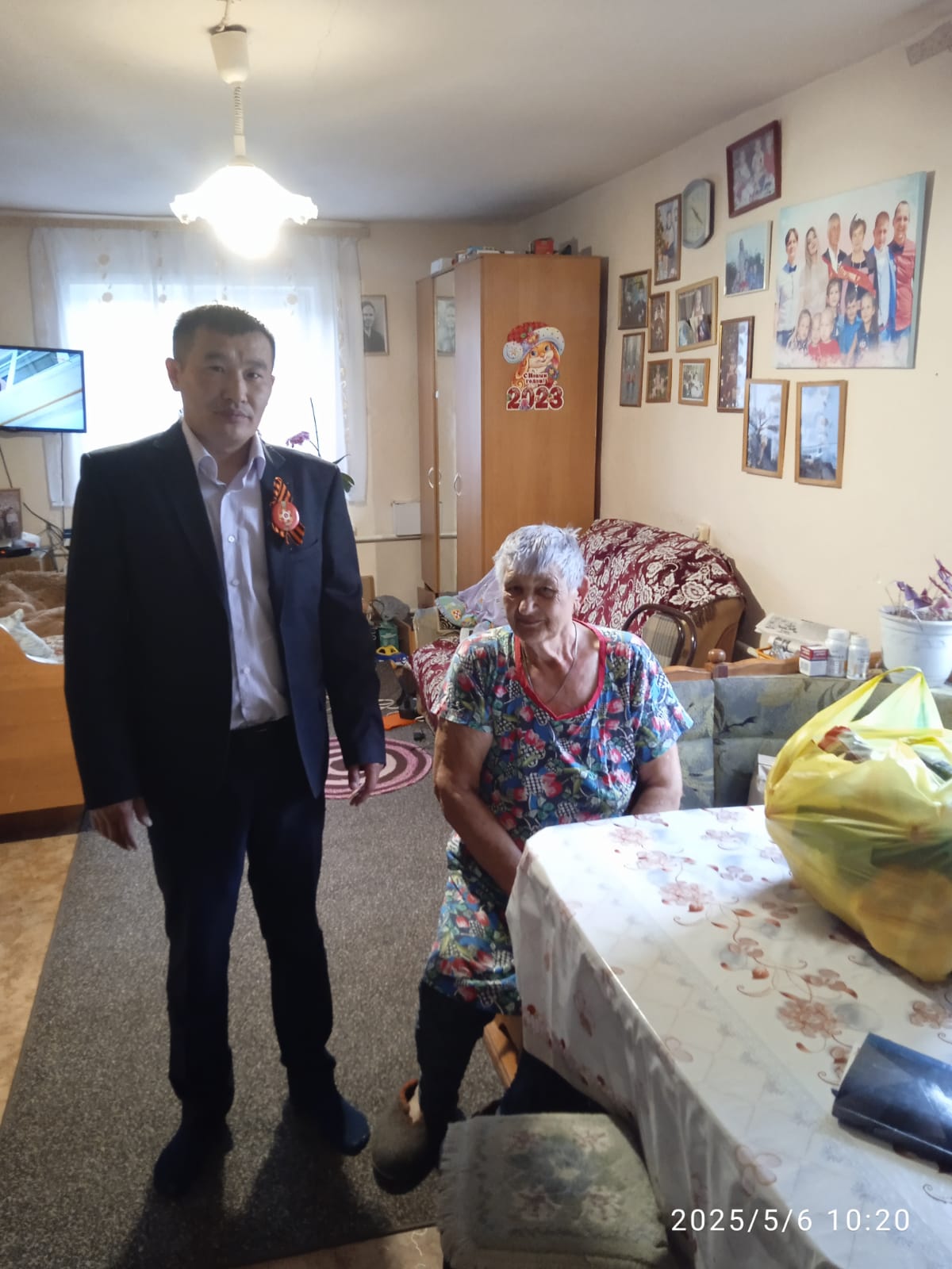 Чойский районный суд Республики Алтай принял участие в мероприятии «Эстафета добрых дел» приуроченного к 80-летнему юбилею Победы в Великой Отечественной войне 1941-1945гг., проводимом Советом судей Республики Алтай. 06 мая 2025 года работники суда побывали в гостях у «дитя войны»- у Лобакиной Валентины Степановны, в с. Туньжа Чойского района. Она рассказала нам о своей долгой и не лёгкой жизни. Валентина Степановна родилась 23 января 1945 года в селе Бошкаречка, с четырнадцати лет начала работать наравне со взрослыми. Работать ей приходилось с раннего утра и до позднего вечера. За свою жизнь приходилось работать и бригадиром, и зоотехником в местном совхозе. В 1962 году вышла замуж и вместе с мужем воспитали пятерых своих детей и пятерых приемных. В данный момент живут с мужем в с. Туньжа, дети уже взрослые, все разъехались по разным городам, но все равно часто навещают родителей и помогают по хозяйству. Работники суда от имени судей и всего коллектива поздравили Валентину Степановну с наступающим праздником, пожелали ей крепкого здоровья, бодрости и долгих лет жизни. Ветерану был вручен в подарок продуктовый набор. От всей души желаем всем ветеранам, работникам тыла и детям войны крепкого здоровья, мира и благополучия! |