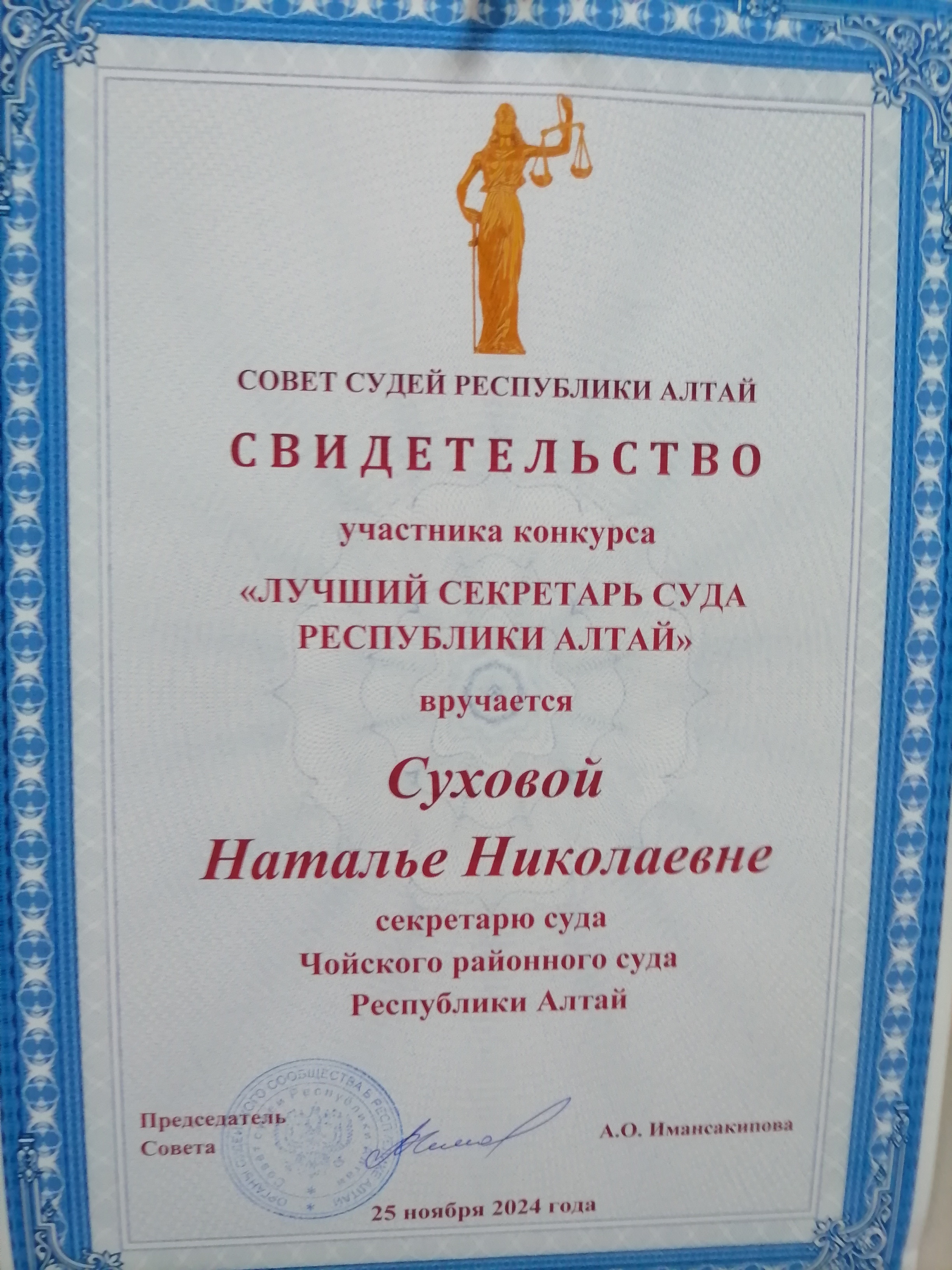 Сухова Н.Н. представила творческий конкурс о повседневной работе секретаря суда,